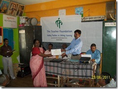 'Whole School Turnaround' is a two year project, in which we make very intensive effort aimed at improving schools under four domains namely leadership and management,teaching and learning, student environment and community involvement. Our intervention in schools ends with putting systems in place and ensuring sustainability of the impact of the project. Whole school Turnaround at Government higher primary school, Yelheri in Yadgir district of Karnataka has been successfully completed.To celebrate success and to recognize teachers for their contribution, a graduation ceremony was organized by The Teacher Foundation in the school for the headmaster and assistant teachers on 23 June 2011, at GHPS ,Yelheri. The school was certified and each individual in the school was acknowledged for his/her effort in brining about a change in the school. This was an occasion for the teachers and TTF to share their happiness, thoughts and exchange gratitude.